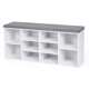 Schuhschrank mit gepolsterter Sitzbank GABI, 10 Fächer, 104x30x48 cm, grau/weiß